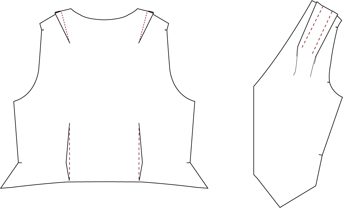 3. Sew the darts on the back pieces, right sides together. Press them towards the side seam.