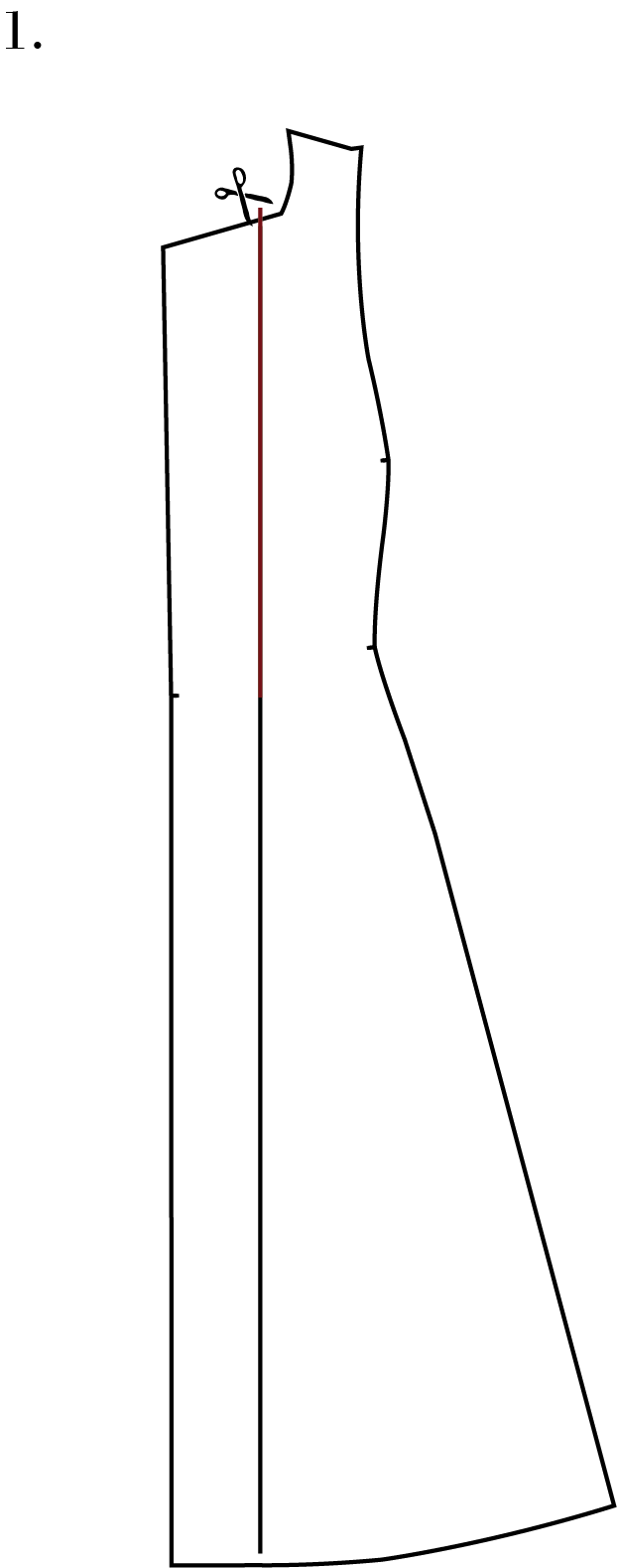Draw a horizontal line 10 cm above the bust notch on pattern piece A (or make it the length you want)